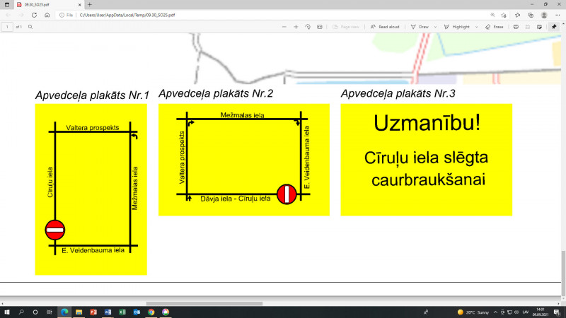 Būvdarbu aktualitātes ValterosViens no aktīvākajiem projekta “Jūrmalas ūdenssaimniecības attīstība IV kārta” būvdarbu rajoniem ir Valteros. Lai iedzīvotājiem būtu vieglāk orientēties jaunajos pagaidu ceļa zīmju aizliegumos, SIA “Binders” pārstāvji sagatavojuši vienotu rajona braukšanas zonu karti (ar sarkano krāsu izceltas jaunākās pagaidu zīmes un šī brīža aktīvo būvdarbu rajoni), kā arī apbraucamo ielu zīmes. Pašlaik būvdarbi notiek (slēgta satiksme): 1. Irbju ielā posmā no E.Veidenbauma līdz Lapsu ielai. 2. Medņu ielā posmā no E.Veidenbauma līdz Lapsu ielai. 3. Cīruļu ielā posmā no E.Veidenbauma līdz Lapsu ielai un Cīruļu līdz Skautu ielai. 4. Viņķu ielā no Gulbju līdz Cīruļu ielai. Pārējās ielās tīklu izbūve pabeigta, pašlaik ielas caurbraucamas. No 20.09.- 24.09. plānota asfalta segumu atjaunošana (īslaicīgi, uz darbu laiku satiksme slēgsies): 1. Zaļā iela; 2. Lapsu iela no Rubeņu līdz Medņu ielai; 3. Cīruļu iela no no E.Veidenbauma līdz Lapsu ielai. Kā informē būvnieki, kamēr ielās nav sakārtoti segumi, izveidoti apbetonējumi lūkām, kapēm tikmēr ielu galos atradīsies zīmes “Braukt aizliegts”. Braukšanas karti skatīt šeit: WP_TEMP_LINK_https://old.jurmalasudens.lv/box/files/buvdarbi_valteri_10.09.2021.jpg![]() 30.08. - 25.09.