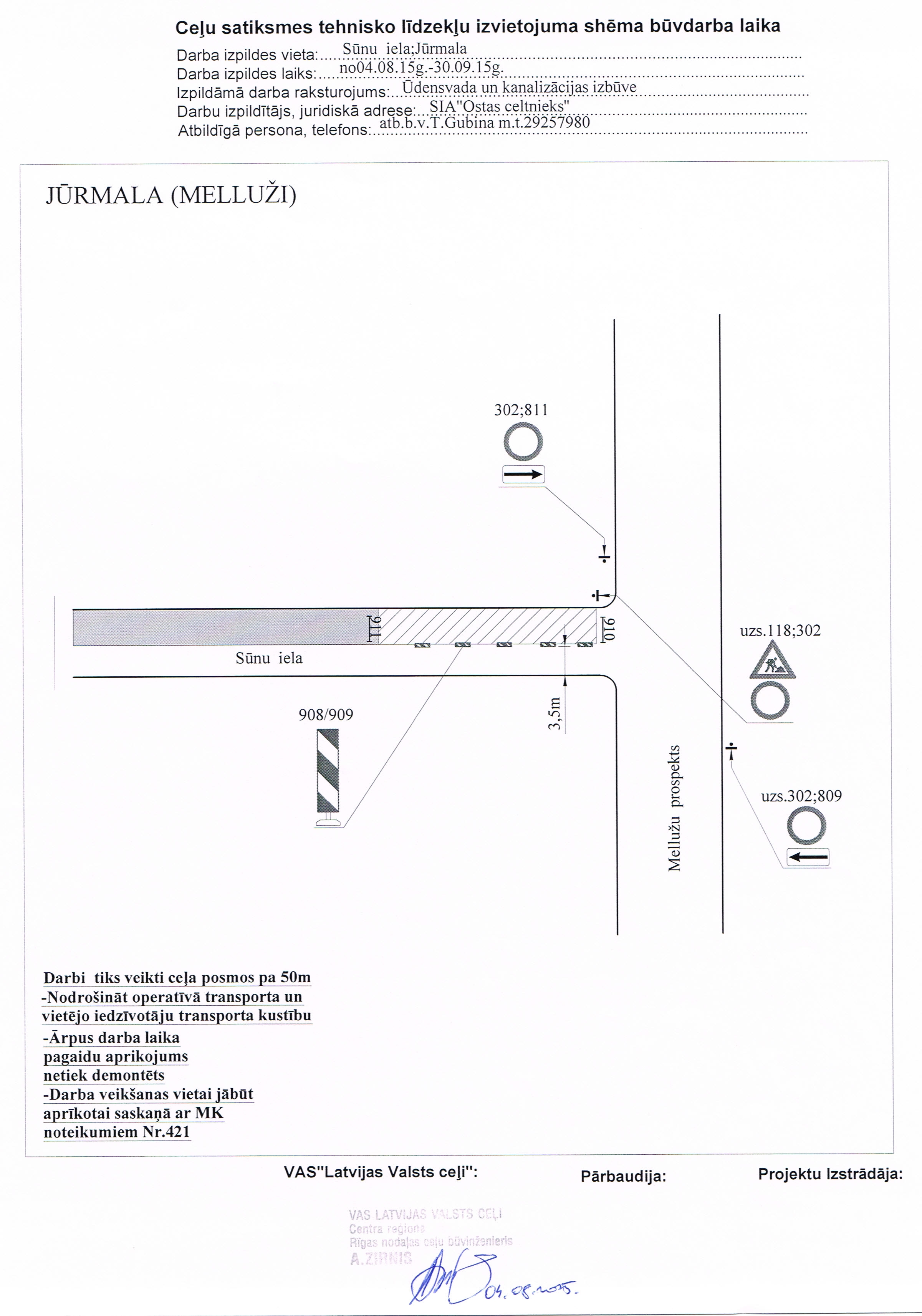 Ūdensvada un kanalizācijas izbūves darbu dēļ līdz 9.novembrim tiek pārkārtota...Ūdensvada un kanalizācijas izbūves darbu dēļ līdz 9.novembrim tiek pārkārtota autotransporta satiksmes organizācija Sūnu ielā. (Informācija: 29257980) Lūdzam autovadītājus pievērst uzmanību satiksmes organizācijas norādēm un rēķināties ar to, ka izvēlētajam maršrutam var būt nepieciešams vairāk laika, nekā sākotnēji plānots. Skatīt satiksmes organizācijas shēmu 28.08. - 30.09.