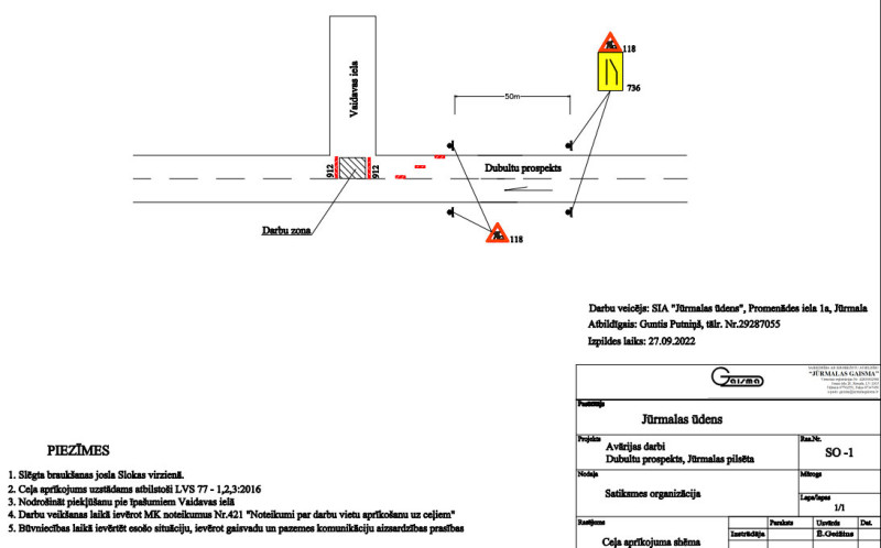 Remontdarbi Dubultu pr. un Lielupes ielas krustojmāRemontdarbi Dubultu pr. un Lielupes ielas krustojmā Informējam, ka šodien uzsākti kanalizācijas tīkla remontdarbi Dubultu prospekta un Lielupes ielas krustojumā. Tāpēc autovadītājiem lūdzam ievērot izliktās ceļa zīmes. Remontdarbus plānots pabeigt līdz 3. martam. Atvainojamies par neērtībām!27.09. - 01.10.