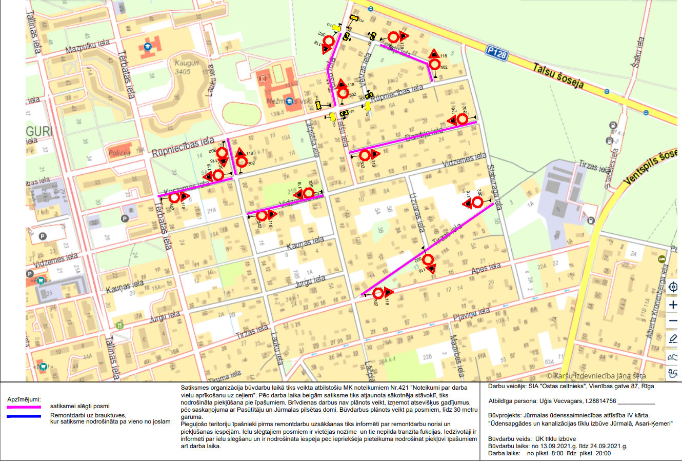 Satiksmes ierobežojumi KaugurosRealizējot projekta “Jūrmalas ūdenssaimniecības attīstība IV kārta” būvdarbus, gandrīz visos pilsētas rajonos ir jāsaskaras ar satiksmes ierobežojumiem. Tas skar arī Kauguru iedzīvotājus Tērbatas, Rūpniecības, Telšu, Staburaga un Tirzas ielu rajonā. Pievienota karte ar satiksmes ierobežojumiem līdz šī gada 24. septembrim. Būvdarbus veic SIA “Ostas celtnieks”. Projekta vadītājs Uģis Vecvagars. Mob.t. +371 29446373 Atvainojamies par neērtībām! Karti skatīt šeit23.07. - 01.01.