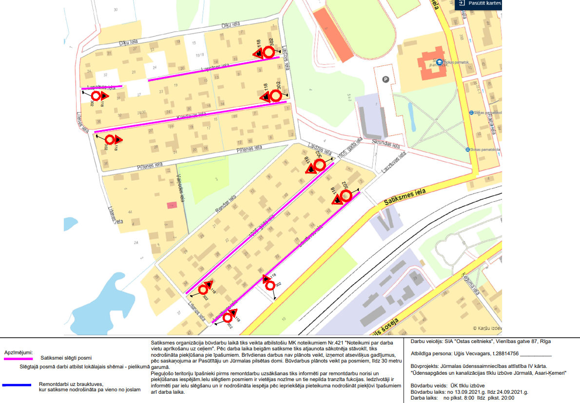 Satiksmes ierobežojumi SlokāRealizējot projekta “Jūrmalas ūdenssaimniecības attīstība IV kārta” būvdarbus, gandrīz visos pilsētas rajonos ir jāsaskaras ar satiksmes ierobežojumiem. Tas skar arī Slokas iedzīvotājus Lapotnes, Kandavas, 1905. gada un Lauztuves ielu rajonā. Pievienota karte ar satiksmes ierobežojumiem līdz šī gada 24. septembrim. Būvdarbus veic SIA “Ostas celtnieks”. Projekta vadītājs Uģis Vecvagars. Mob.t. +371 29446373 Atvainojamies par neērtībām! Karti skatīt šeit15.09. - 25.09.