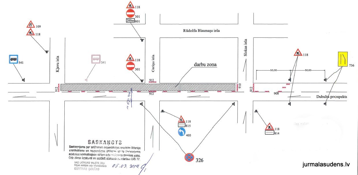 Uzmanību! Ilgstoši ceļu satiksmes ierobežojumi Dubultos! Pirms Jūrmalas...Uzmanību! Ilgstoši ceļu satiksmes ierobežojumi Dubultos! Pirms Jūrmalas pilsētas domes plānotajiem Dubultu transporta mezgla (virzienā no Rīgas uz Kauguriem) pārbūves darbiem, SIA „Jūrmalas ūdens” no šī gada 11. marta līdz 14. aprīlim veiks ūdensvada pārbūvi Dubultu prospektā no Slokas ielas līdz Kļavu ielai. Līdz ar to šajā laika posmā tiks ieviesti satiksmes ierobežojumi un organizācijas izmaiņas. Dubultu prospektā šajā posmā tiks slēgta satiksmes plūsma pa vienu no braukšanas joslām, kā arī tiks aizliegta auto stāvēšana Dubultu prospektā no Slokas ielas līdz Kļavu ielai. Savukārt transporta mezgla pārbūvi plānots paveikt divu mēnešu laikā pēc ūdensvada pārbūves darbiem. Satiksmes sastrēguma stundās (vakarā pēc darba) iesakām iespēju robežās izmantot apvedceļu pa Slokas ielu (nogriežoties uz Dubultu poliklīniku) vai Jūrmalas apvedceļu. Skatīt satiksmes organizācijas shēmuAtvainojamies par sagādātajām neērtībām! 15.11. - 22.11.
